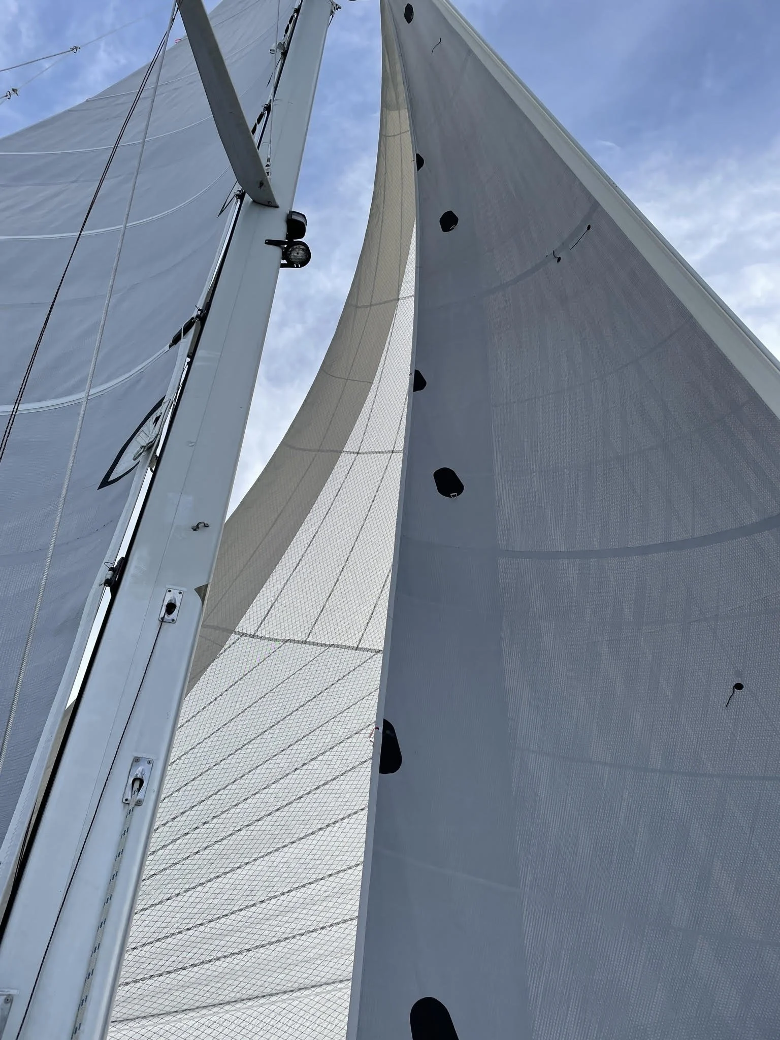 “After we purchased our 1992 Lagoon 42 TPI we felt a light catamaran like this really deserved some high performance sails that could also stand up to cruising wear and tear. We then reached out to Jerry Latell and decided to work with his team and Evolution sails to make us a new mainsail, self tacking jib and Code 0. The team was excellent to work with and we have been very happy with the results. The expedition membrane is good looking, tough and it sets beautifully.”